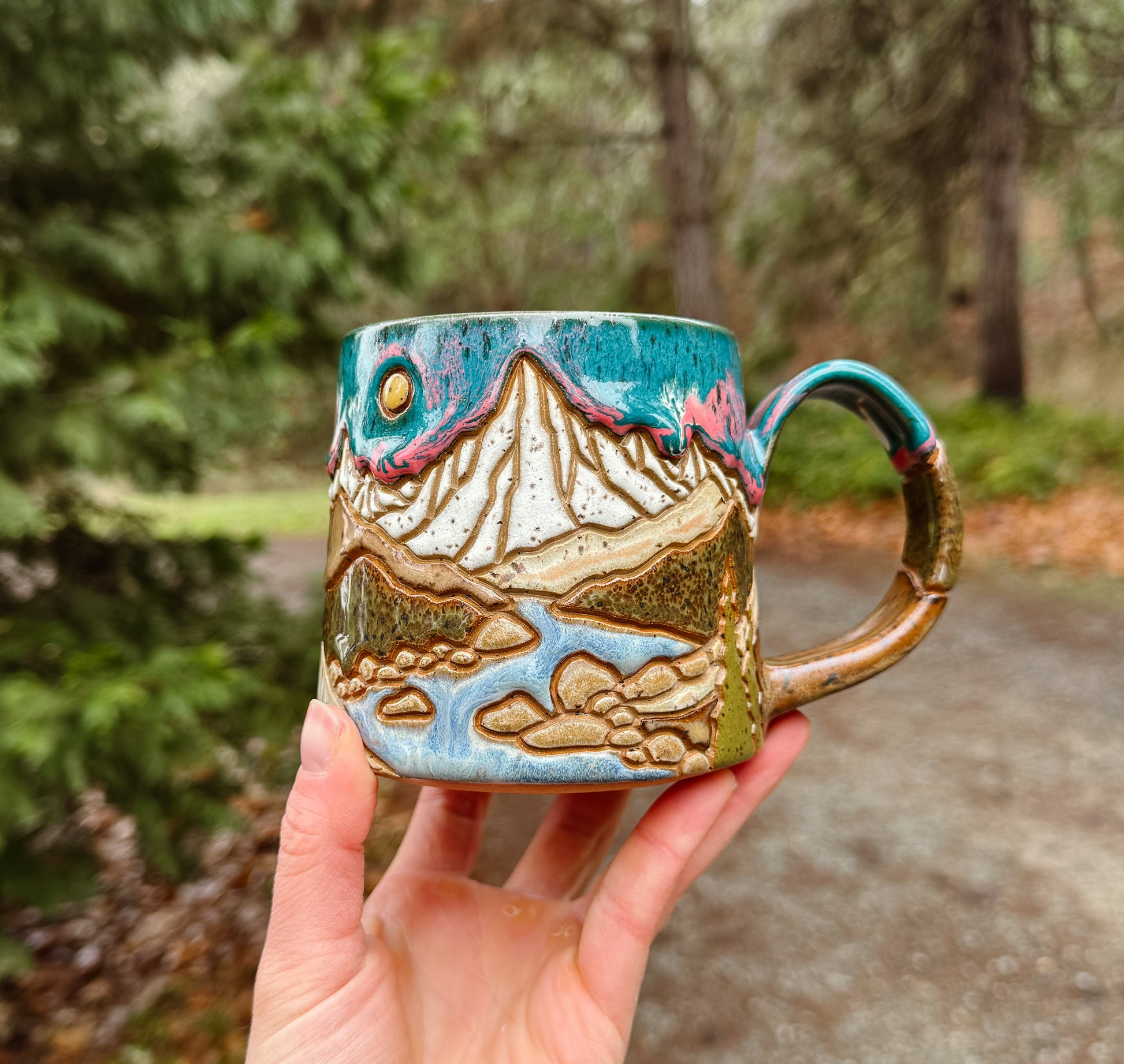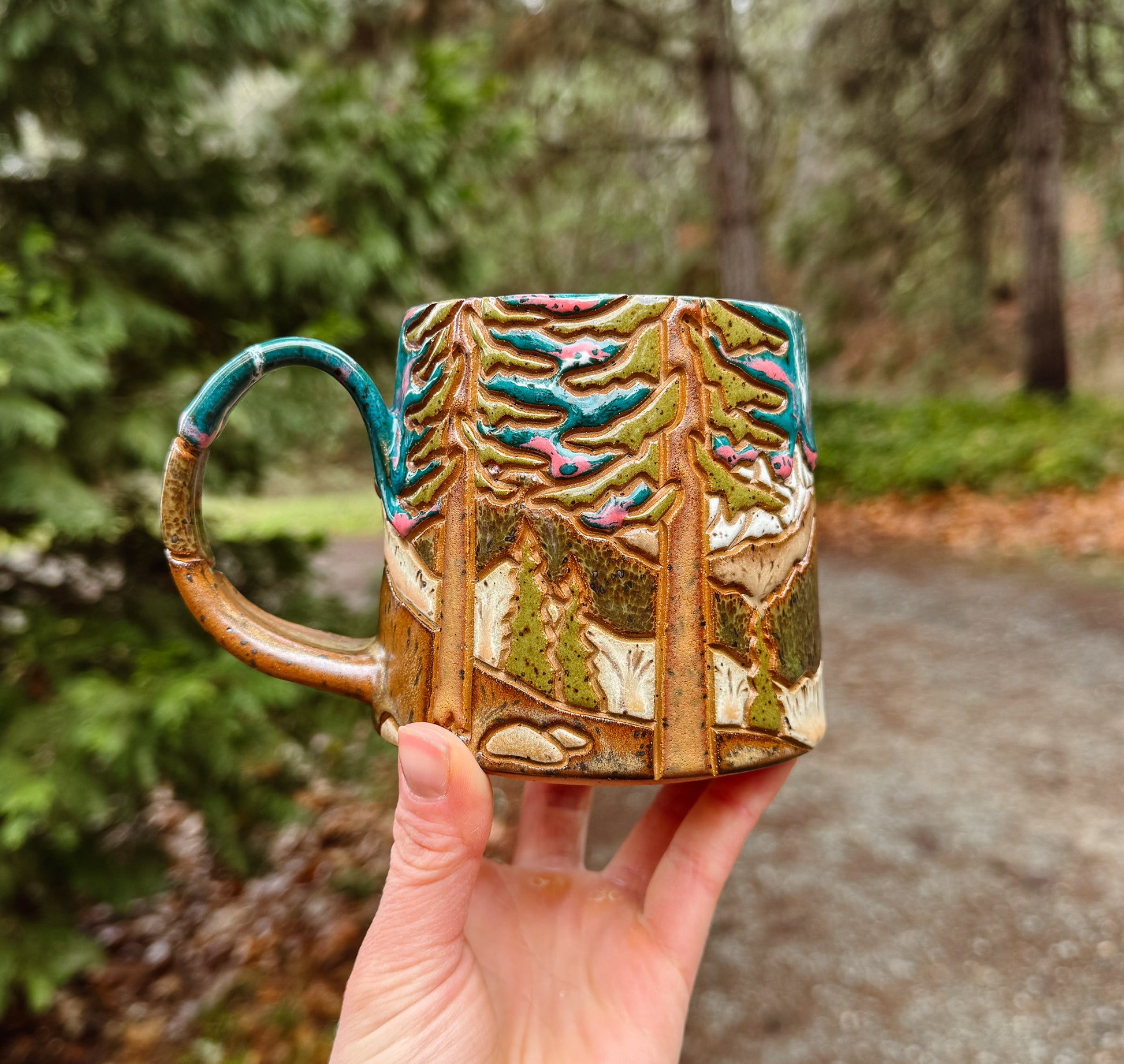 Each mug takes 8-10 hours to carefully design, carve, and glaze. These are just a few of the steps I take to create them. Each mug is completely unique, with hand carved and glazed detailing.