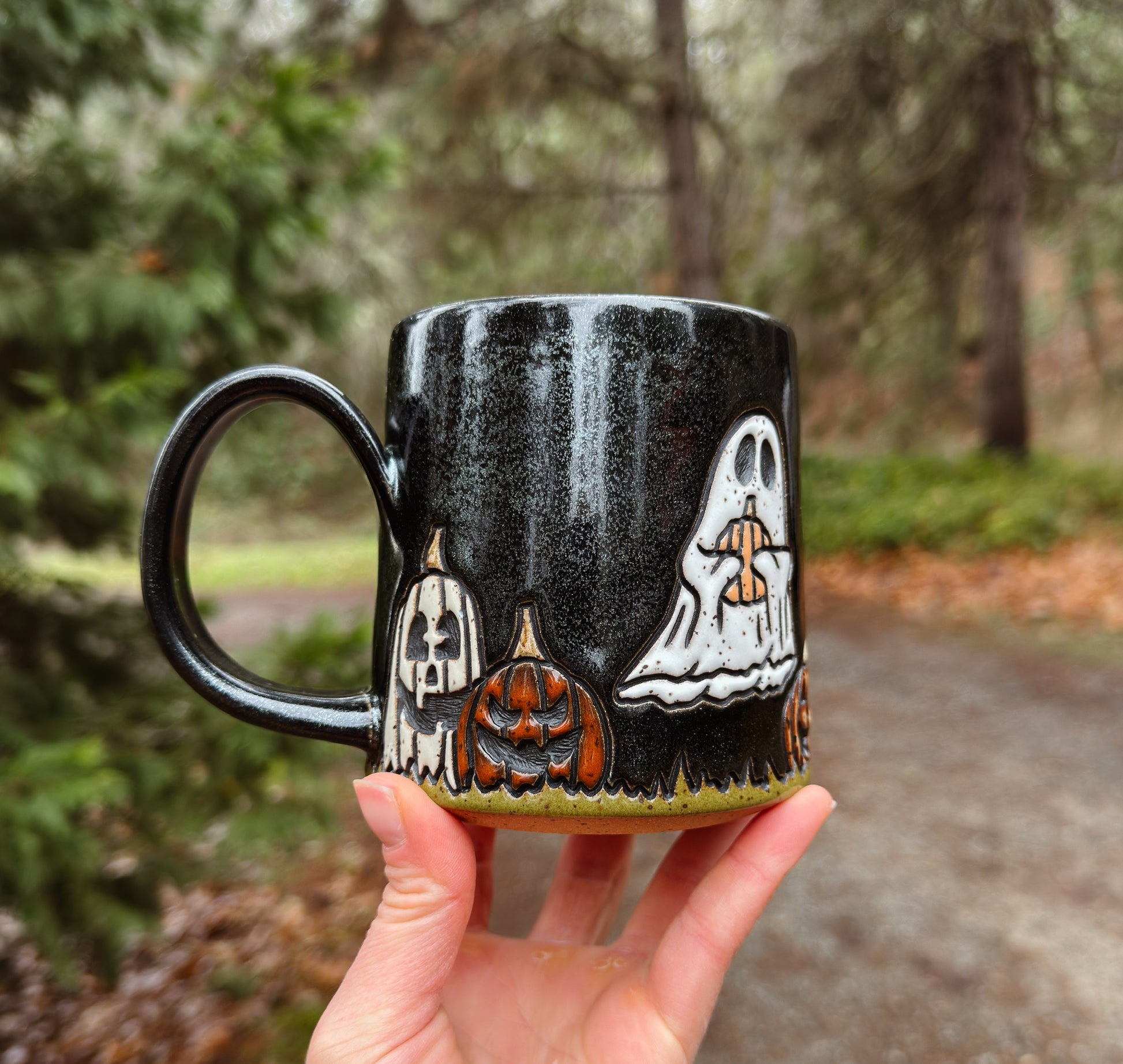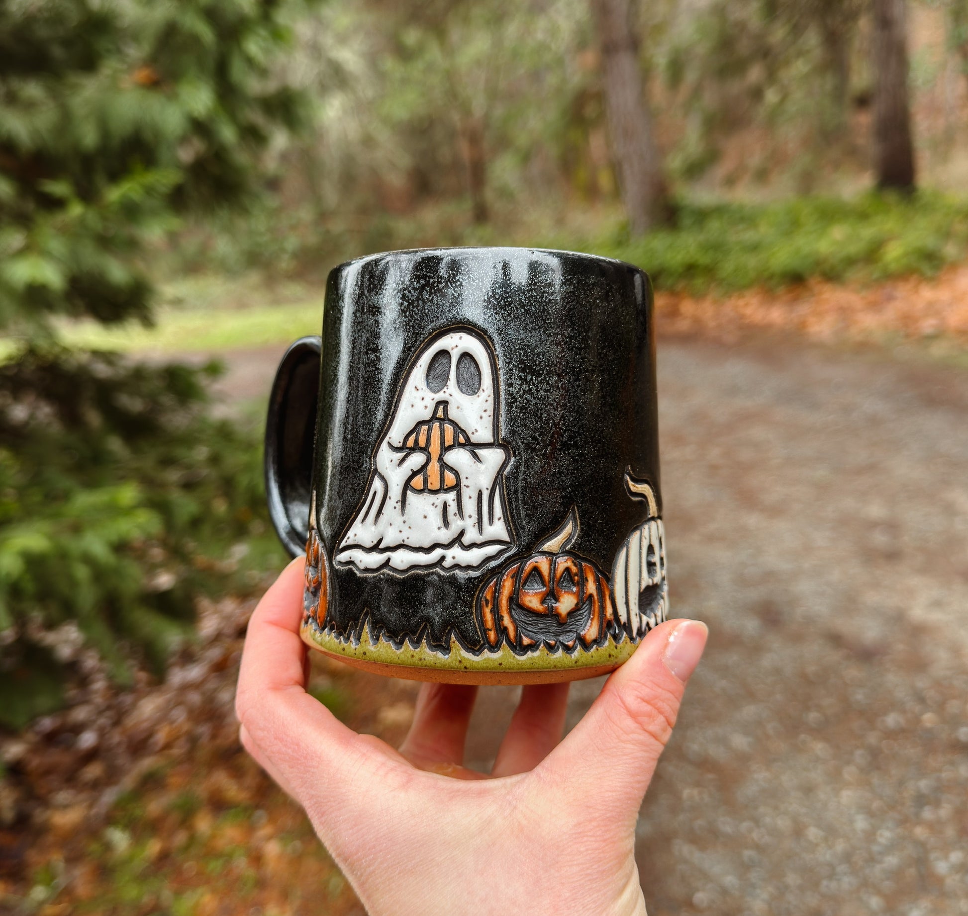 Each mug takes 8-10 hours to carefully design, carve, and glaze. These are just a few of the steps I take to create them. Each mug is completely unique, with hand carved and glazed detailing.